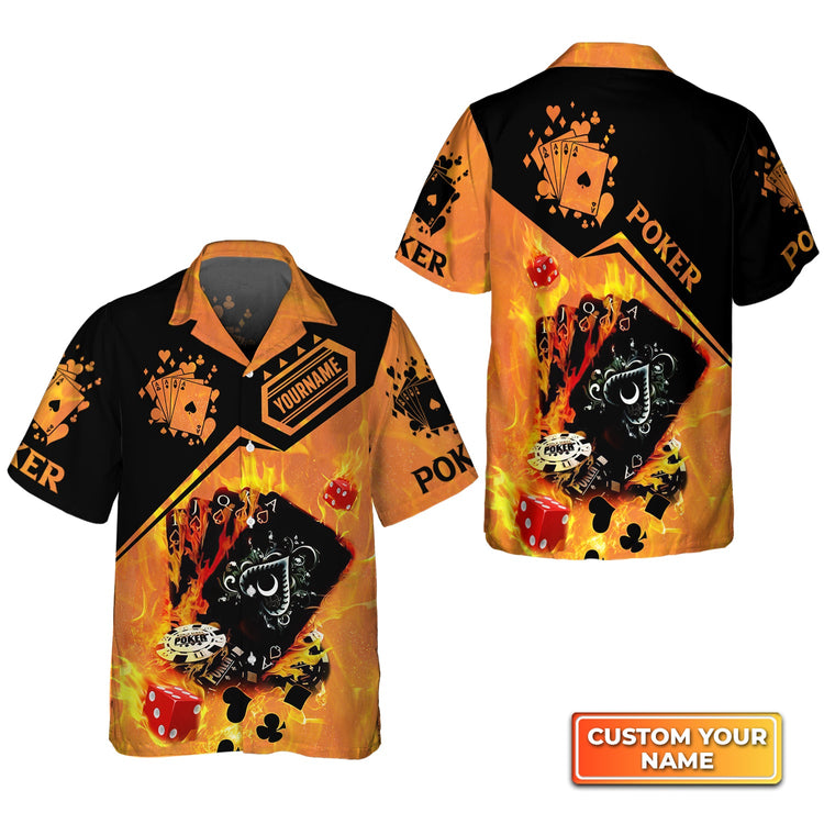Poker Royal Flush On Fire Personalized Name 3D Hawaiian Shirt For Poker Players Product Description: Whoop Whoop Whoop and spread laughter with the 3D Full Over Print. All products are made-to-order and proudly printed with the best screen printing or print to garment processes available. Our high construction quality